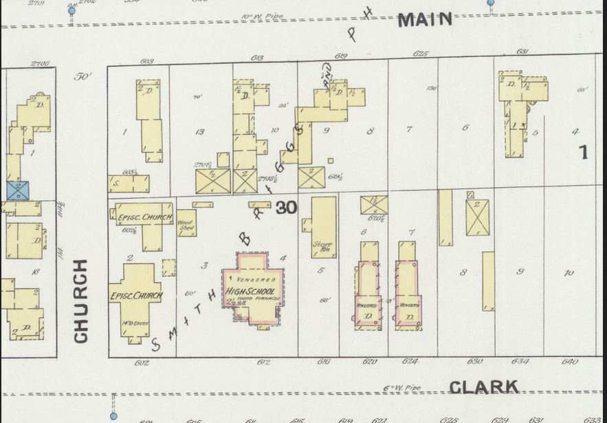 The new high school would be built down the road and a new grammar school on the site of the burned-out school. Bids for construction of the high school facility were requested starting as soon as December of 1892. The contract was awarded to MT Olin who began work right away. By mid-1893 the building was well on its way to completion: