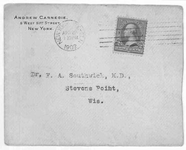 By January 1902 a few Stevens Point community members had written to Carnegie in hopes of being gifted the funds for a new library building. One of those people was the city physician, Dr. Frank Southwick. Civic minded Southwick had come to Stevens Point from Maine in 1889 and was best known for helping to eradicate diphtheria among the city’s children through immunization. He had managed to gain the attention of Carnegie when others had not, and he had managed to receive a reply stating that consideration would be given to the matter.