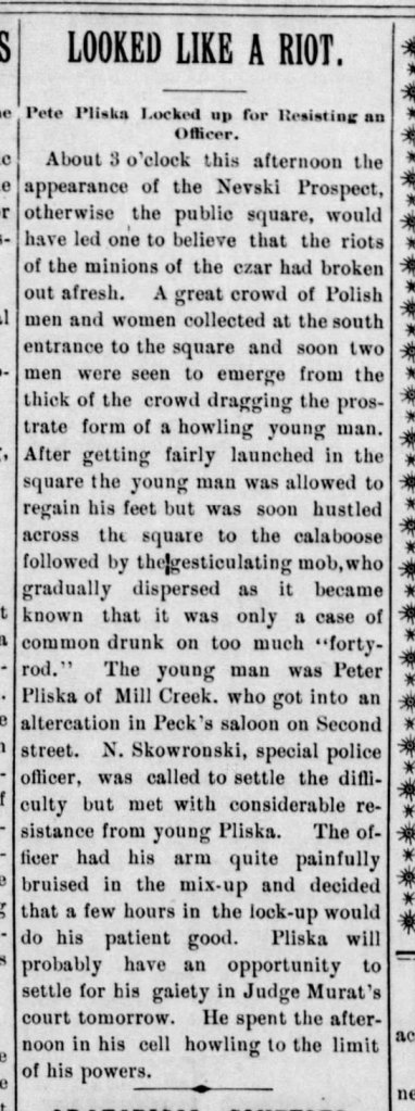 Though this is the only time it is know that a mob of people were involved, this would not be Peter Pliska’s only publicized encounter with the police and what would consistently be his downfall, alcohol. Pliska would be no stranger to constant troubles. He became well known to Judge Murat, standing before him numerous times over the years, and the local police, as well as the guards at the State Prison at Waupun. Pliska was arrested a few times for abandoning his 5 minor children after his wife died at the age of 39. He eventually sat time in prison for those charges. When he was paroled he could not stay away from alcohol and had soon had his parole revoked. When he was released again he continued to drink and was even publicly blacklisted in the papers. Over the years Pliska was arrested for various crimes such illegal spearfishing, drunk and disorderly, obscene and abusive language, and making his own alcohol during prohibition. At 62 years old he was sent back to Waupun for stealing chickens. Peter Pliska was certainly a local character, He appears in the newspapers a number of times and we will likely revisit him again.