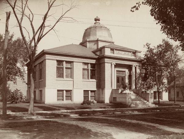 The afternoon of June 1st the doors of Stevens Point’s new Carnegie Library opened to the public for the first time. The words “Open To All,” etched in stone above the entrance greeted the city’s new patrons encouraging all to enter and enjoy. The Union Band was set up in the lobby and an art exhibit of local children’s drawings hung on display in the new children’s reading room. Decorations were hung sparingly not to overshadow the real stars of the event, the building itself and the books on their new shelves.